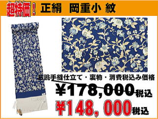 当店の着物・帯・長襦袢などの表示価格は、お仕立て上がり税込み価格で表示しておりますので、安心してお買い物していただけます。
